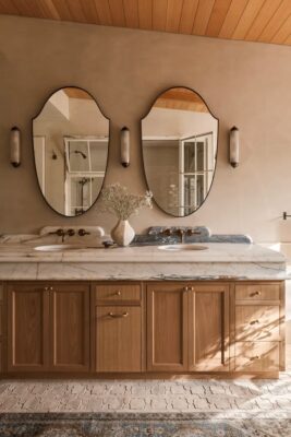 If you’re not ready to commit to a saturated hue, you’ll be happy to learn that a more neutral, mid-tone brown is one of the most popular shades for a bathroom. Zillow’s analysis finds that prospective buyers will pay $681 more for a house with a bathroom painted in this color. Perhaps we can credit Pantone’s 2025 Color of the Year, Mocha Mousse, for the popularity of this shade, but that’s not your only option for the nature-inspired hues; look at Gaucho Brown by Benjamin Moore and Redend Point by Sherwin-Williams.